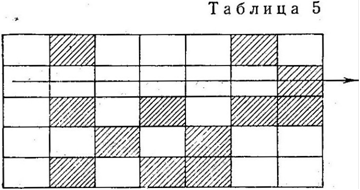 Первый случай. Среди отмеченных клеток имеется одна клетка, единственная в ряду (строке или столбце) (табл.5).