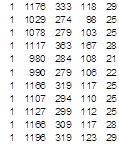 | № | Xі1-Х1 | Xі2-Х2 | Xі3-Х3 | Xі4-Х4 | (Xі1-Х1)2 | (Xі2-Х2)2 | (Xі3-Х3)2 | (Xі4-Х4)2 |