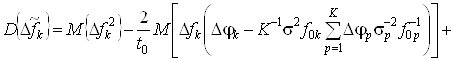 . В силу того, что математическое ожидание нескомпенсированного отклонения частоты k-го генератора, определяемое выражением (43), равно нулю, определим дисперсию нескомпенсированного отклонения частоты k-го генератора для данного случая. Перепишем выражение (43) с учетом заданных исходных данных: