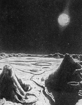 Итак, Меркурий - это царство пустынь. Одна его половина - горящая каменная пустыня, другая половина - ледяная пустыня, быть может, покрытая замершими газами.