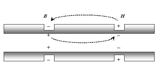 В результате этого между возбужденным и невозбужденным участками мембраны (B и H) имеется разность потенциалов. Наличие разности потенциалов приводит к появлению между этими участками электрических токов, называемых локальными токами или токами действия. На поверхности клетки локальный ток течет от невозбужденного участка к возбужденному; внутри клетки он течет в обратном направлении.