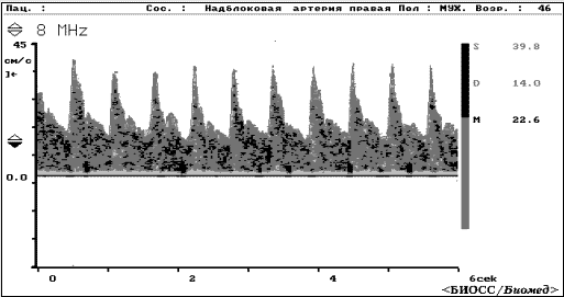 Рис 1.6 Допплерограмма надблоковой артерии.