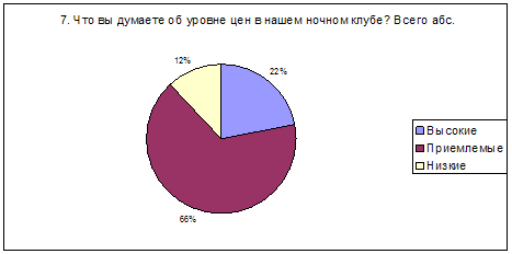 7вопрос – «Что Вы думаете об уровне цен в нашем ночном клубе?»