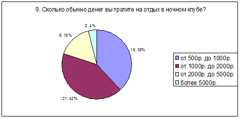 9вопрос – «Сколько обычно денег вы тратите на отдых в ночном клубе».