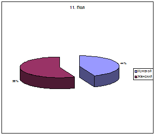 Этим вопросом я хотел выяснить, какой пол преобладает среди посетителей клуба. Мною были получены следующие результаты.