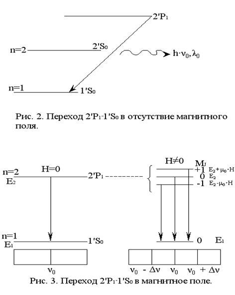 1 при переходе 2’Pl - 1’S0, в магнитном поле вместо одной линии λ0 будет излучаться три линии: λ1, λ2 = λ0, λ3.