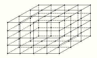 Симметрия, закон постоянства углов и ряд других свойств кристаллов привели кристаллографов к догадке о закономерном расположении частиц, составляющих кристалл. Они стали представлять, что частицы в кристалле расположены так, что центры тяжести их образуют правильную пространственную решётку. Например, кристалл поваренной соли NaCl состоит из совокупности большого числа ионов Na+ и Cl- , определённым обзором расположенных друг относительно друга. Если изобразить каждый из ионов точкой и соединить их между собой, то можно получить геометрический образ, рисующий внутреннюю структуру идеального кристалла поверенной соли, его пространственную решётку (рис.5). Пространственные решётки различных кристаллов различны.
