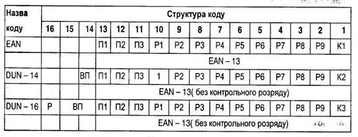 Кодировка единиц поставки кодами DUN - 14 или DUN -16 должно осуществляться добавлением одного или трех цифровых разрядов к коду EAN - 13 единицы потребления, которая содержится в этой единице поставки (упаковке). Дополнительные разряды размещаются перед кодом EAN - 13 единицы потребления и вмещают код вида поставки (ВП).