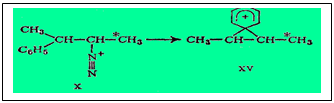 2.Вторая стадия данной перегруппировки - это гетеролитический отрыв фенильного радикала с дальнейшим присоединением его к соседнему атому углерода, несущему дефицит электронной плотности. В результате того, что разрыв и образование новой связи происходят синхронно (одновременно), этот процесс является внутримолекулярным (интрамолекулярным).