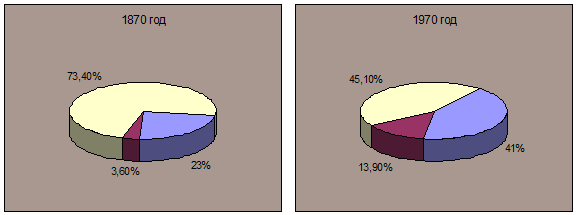 Трансакционные издержки, возникающие по ходу взаимодействия экономических агентов, противопостав-ляются трансформационным (производственным) издерж-кам, связанным с физическим преобразованием ресурсов. Значение трансакционных издержек, как показали Дж. Уоллис и Д. Норт, возрастает в процессе экономического развития. Согласно их расчетам, доля в ВВП США трансакционных услуг, оказываемых частным сектором, увеличилась с 23% в 1870 г. до 41% в 1970 г., оказываемых государством - с 3,6% в 1870 до 13,9% в 1970 г., что в итоге составило рост с 26,6% до 54,9%.
