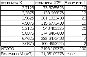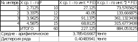 D (X) = 21,9 – (4,4) ^2= 2,5 тенге