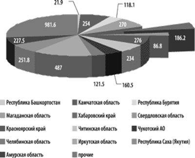Четыре из шести субъектов-лидеров: Красноярский край, Магаданская область, Республика Саха (Якутия) и Иркутская область – заметно отличаются от прочих, в том числе от Амурской области и Хабаровского края, не только высокой долей в добыче золота, но и значительной обеспеченностью прогнозными ресурсами и запасами, причем последние сосредоточены в крупных и сверхкрупных месторождениях (Сухой Лог в Иркутской области, Олимпиадинское в Красноярском крае, Нежданинское в Саха-Якутии, Наталкинское в Магаданской области). Тогда как ни в Амурской области, ни в Хабаровском крае, по добыче также входящих в группу лидеров, месторождения такого класса не известны. Эти регионы характеризуются недостаточными количествами разведанных запасов (12 и 13 места среди российских регионов) и прогнозных ресурсов (8 и 6 места), что свидетельствует о необходимости расширения в них геологоразведочных работ. По данным Министерства природных ресурсов Хабаровского края, объем добычи драгметаллов в крае к 2009 году может сократиться на четверть. Причина – резкое (в 2,2 раза) снижение ресурсной базы.