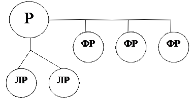 Функциональные службы осуществляют техническую подготовку, готовят варианты решений, а линейный Р (руководитель) выбирает решение и реализует его.