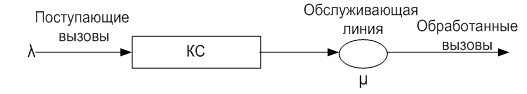 На вход КС поступает входящий поток вызовов, к выходам подключаем пучок исходящих линий емкостью