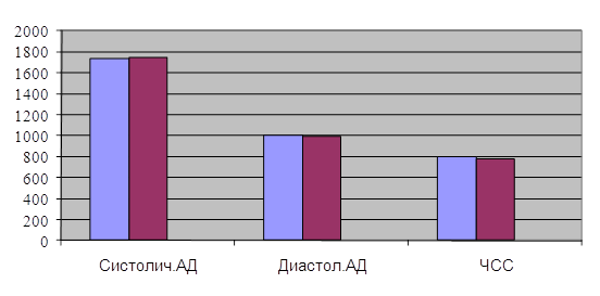 Диаграмма 3.1 Итоговые показатели АД и ЧСС в начале эксперимента