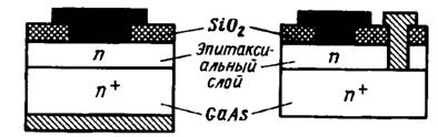 Учёт этих противоречивых требований к концентрации примесей в исходном полупроводнике приводит к необходимости создания двухслойной базы диода Шотки (рис. 1). Основная часть кристалла – подложка толщиной около 0,2 мм – содержит большую концентрацию примесей и имеет малое удельное сопротивление. Тонкий монокристаллический слой того же самого полупроводника (толщиной в несколько микрометров) с той же электропроводностью -типа может быть получен на поверхности подложки методом эпитаксиального наращивания. Концентрация доноров в эпитаксиальном слое должна быть значительно меньше, чем концентрация доноров в подложке.