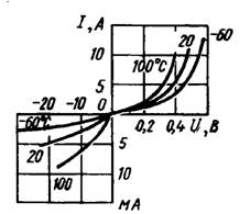 Рис. 2. ВАХ кремниевого диода Шотки 2Д219 при разных температурах