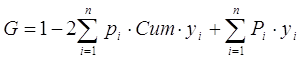 где G – показатель, измеряющий степень неравенства доходов, или степень концентрации доходов (или богатства);