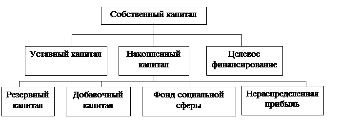 Собственный капитал может состоять из уставного, добавочного и резервного капитала, фондов специального назначения, накоплений нераспределенной прибыли, целевого финансирования и целевых поступлений (рис. 1.1).