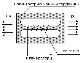Магнитострикционный эффект используется при изготовлении УЗ-вых магнитострикционных преобразователей (рис. 3).
