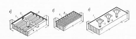 Разновидностью сплошных фундаментов являются так называемые ребристые и коробчатые конструкции {рис.5)