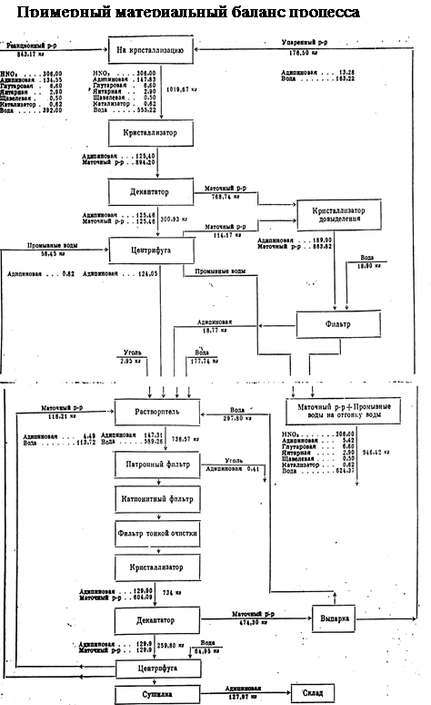 Рис.8. Материальный баланс процесса выделения адипиновой кислоты