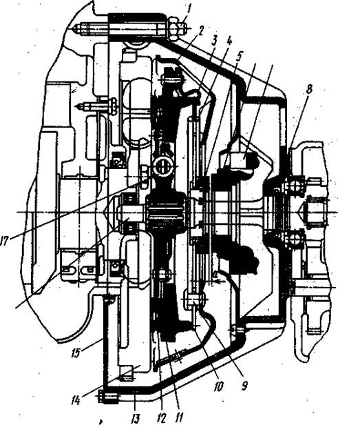 На современных моделях легковых автомобилей устанавливается сухое однодисковое сцепление с одной центральной диафрагменной пружиной 10 в виде усеченного конуса Пружина