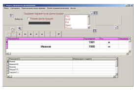 В разработанном приложении интерфейс пользователя организован при помощи компонентов меню, компонентов работы с базами данных, а также при помощи механизма обмена, осуществляемого при помощи буфера обмена.