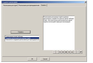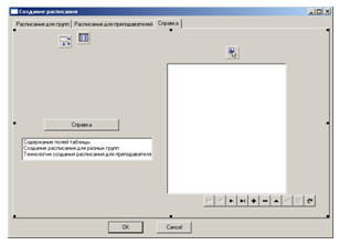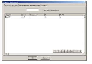 автоматизация ввода информации о курсах и группах, составление расписания проведения занятий для каждого преподавателя и каждой группы, реализация возможности сохранения, просмотра, изменения составленных документов, реализация возможности работы с буфером обмена, настойка внешнего вида окна, а также обеспечение защиты информации. Дополнительной задачей является представление разработанной программы как единого проекта, управляемого через пользовательский интерфейс.