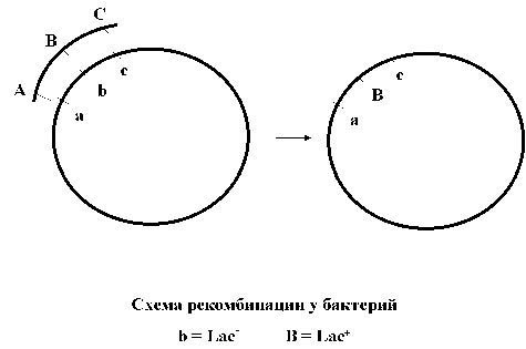 Вновьприбывашая ДНК и хозяйская ДНК обмениваются гомологичными (то есть содержащими одинаковые гены) кусками. Образуется новое сочетание генов в хозяйской клетки. Среди ее старых генов оказывается встроен кусок с новым геном, прибывшим из клетки-донора. Этот процесс обмена кусками ДНК называется рекомбинацией. Та ДНК, которая в процессе рекомбинации оказалась не включенной в хромосому, деградирует и исчезает. Новый ген проявляет себя, клетка оказывается способной расщеплять тот сахар, который раньше использовать не могла. Это все детектируется исследователем. В такой ситуации ген лактазы называют генетическим «маркером», он маркирует участок хромосомы, связанный с определенным свойством бактерии (способностью расщеплять сахар, которую может детектировать исследователь).