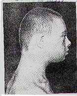 Рис.2.Параллельное расположение плоскости лица и затылка, узкий лоб, низкая граница оволосения (больной Л., 17 лет). |