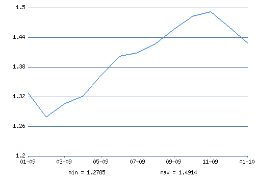 Рис. 2.2 Динаміка англійського фунта стерлінгів по відношенню до долара США січень 2009-січень 2010