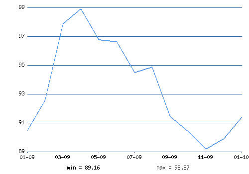 Рис. 2.3 Динаміка японської ієни по відношенню до долара США січень 2009-січень 2010
