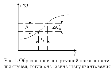Апертурным временем ta называют время, в течение которого сохраняется неопределенность между значением выборки и временем, к которому она относится. Эффект апертурной неопределенности проявляется либо как погрешность мгновенного значения сигнала при заданных моментах измерения, либо как погрешность момента времени, в который производится измерение при заданном мгновенном значении сигнала. При равномерной дискретизации следствием апертурной неопределенности является возникновение амплитудных погрешностей, которые называются апертурными и численно равны приращению сигнала в течение апертурного времени.
