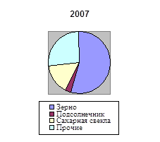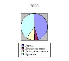 Доля подсолнечника в структуре реализованной продукции растениеводства в 2008 году составила 4,5 %, что на 3,8 % меньше чем в 2006 году.