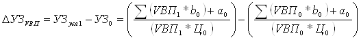 Вначале найдем как меняется себестоимость за счет изменения затрат, путем вычитания из условной себестоимости себестоимость базового периода.