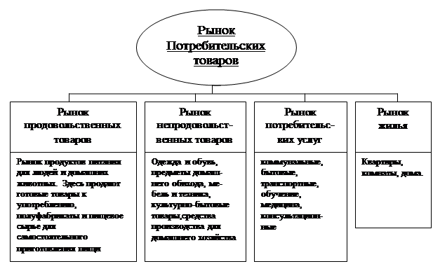 Рынок потребительских товаров имеет определенную структуру (рисунок 1) и занимает центральное место в хозяйственной системе как жизнеобеспечивающая система всего рыночного механизма.