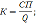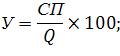 Аналитическим показателем, характеризующим уровень качества продукции, является удельный вес (У) или коэффициент (К) сертифицированной продукции (СП) в общем объеме работ (Q). формула расчета: