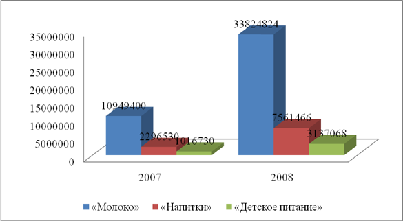 Выручка в сегменте "Детское питание" выросла на 208,92%, за счет хорошего баланса объема и цены. Средняя отпускная цена выросла на 18,4% в 2008 г. Валовая маржа в сегменте "Детское питание" увеличилась до 46,9% в 2008 г. с 45,1% в 2007 г.
