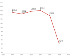 Рис. 4. Динамика ВРП, % к предыдущему году (по состоянию на 2009 год).