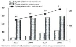 Очевидно, что в банковском секторе сохранится, а возможно, и усилится тенденция к росту доли розничных операций, причем движение здесь будет встречное - и со стороны спроса, и со стороны предложения. Усиление конкурентного давления на рынке обслуживания корпораций будет направлять банки все в большей степени в сторону активизации услуг для массового клиента, а рост платежеспособного спроса населения и объема бизнеса малых предприятий обеспечат опережающую динамику развития рынка.