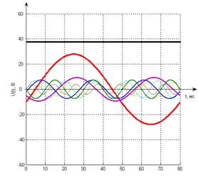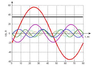 Рис 5.1 7 первых гармоники напряжения на входе.