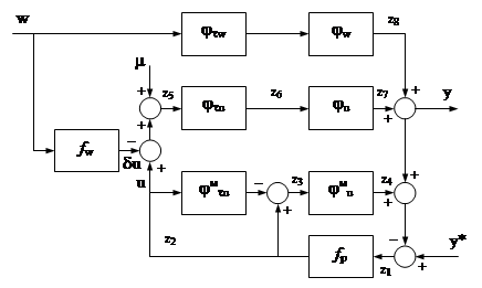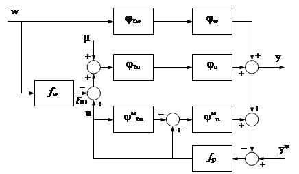 Наличие в передаточной функции компенсатора контролируемого возмущения дифференцирующего звена может привести к колебательности управления, поэтому можно остановиться на статической модели: