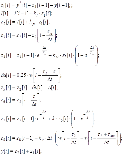 Для дальнейшего моделирования системы на ЭВМ необходимо привести все уравнения к дискретной форме.