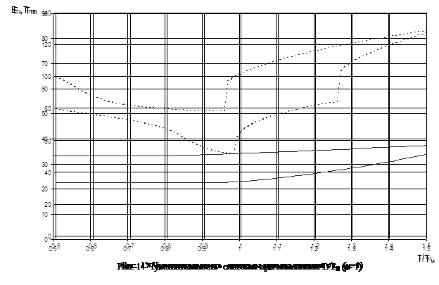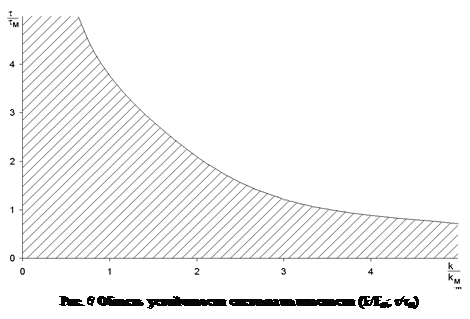По рис. 8 можно определить направление расширения области (в сторону "гребней"), в которой, при увеличении интервала моделирования, переходный процесс успеет завершится. Во всех остальных областях устойчивости наблюдается аналогичная картина – лучеобразное расширение области при увеличении интервала моделирования (например, рис. 9 – область устойчивости (T/Tм; t/tм)).