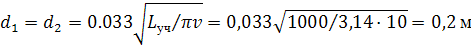 3. Определение диаметра воздуховода на 1, 2 участках, при скорости движения воздуха