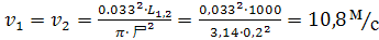 4. Уточняем скорость движения воздуха в воздуховодах на 1, 2 участках: