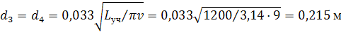 6. Определение диаметра воздуховода на 3, 4 участках, при скорости движения воздуха