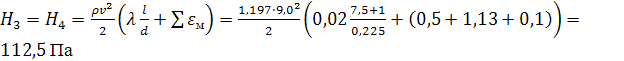 8. Определяем сопротивление движению воздуха на 3, 4 участках сети: