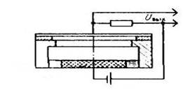 в) электростатических, действие которых основано на изменении силы притяжения обкладок конденсатора при изменении напряжения на нем и на изменении положения обкладок конденсатора относительно друг друга под действием, например, акустических волн.